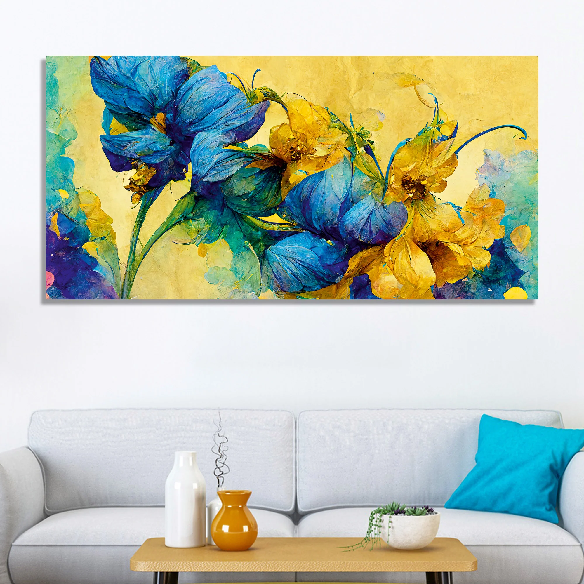 Abstract Blue and Gold Floral Art Canvas Wall Painting