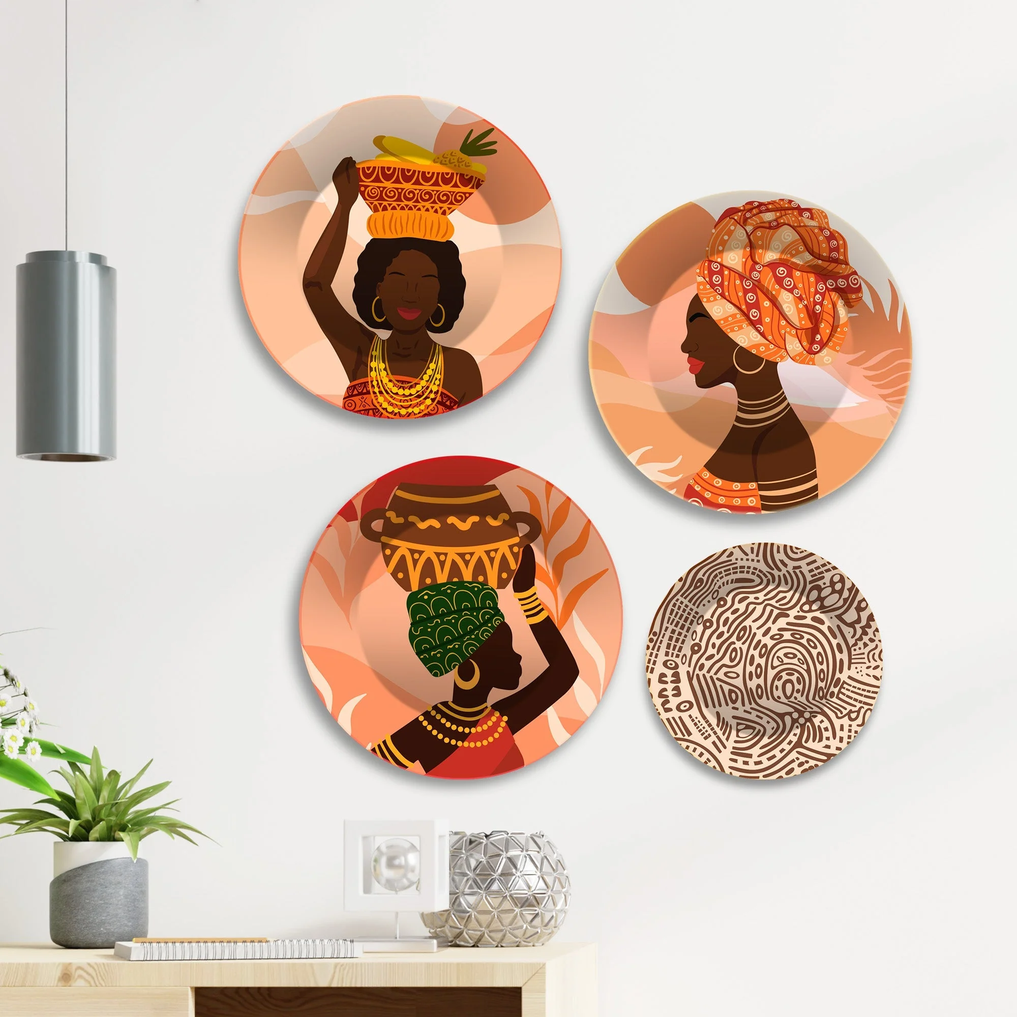 African Women Premium Wall Plates Painting Set of Four, This product is made with glossy finish and premium quality. If you're looking for a classy wall art for your home or office. Its classic design with a modern twist helps you keep an eye on the hour all the while adding panache to your decor. This designer Wall Plate will add charm to any room in your home. This wall plate can be a good gift for Living, Drawing & Dining Room, Outdoor, Gallery, Hotels, Bar, Lounge, Restaurants, Office, Reception, Kitchen Area, Balcony and Bathroom. Must be protected from sunlight, extreme temperature, dust and moisture to ensure long life. Final product colours may vary slightly from the display image due to the difference in printing resolution and digital resolution of various computer or mobile screen.