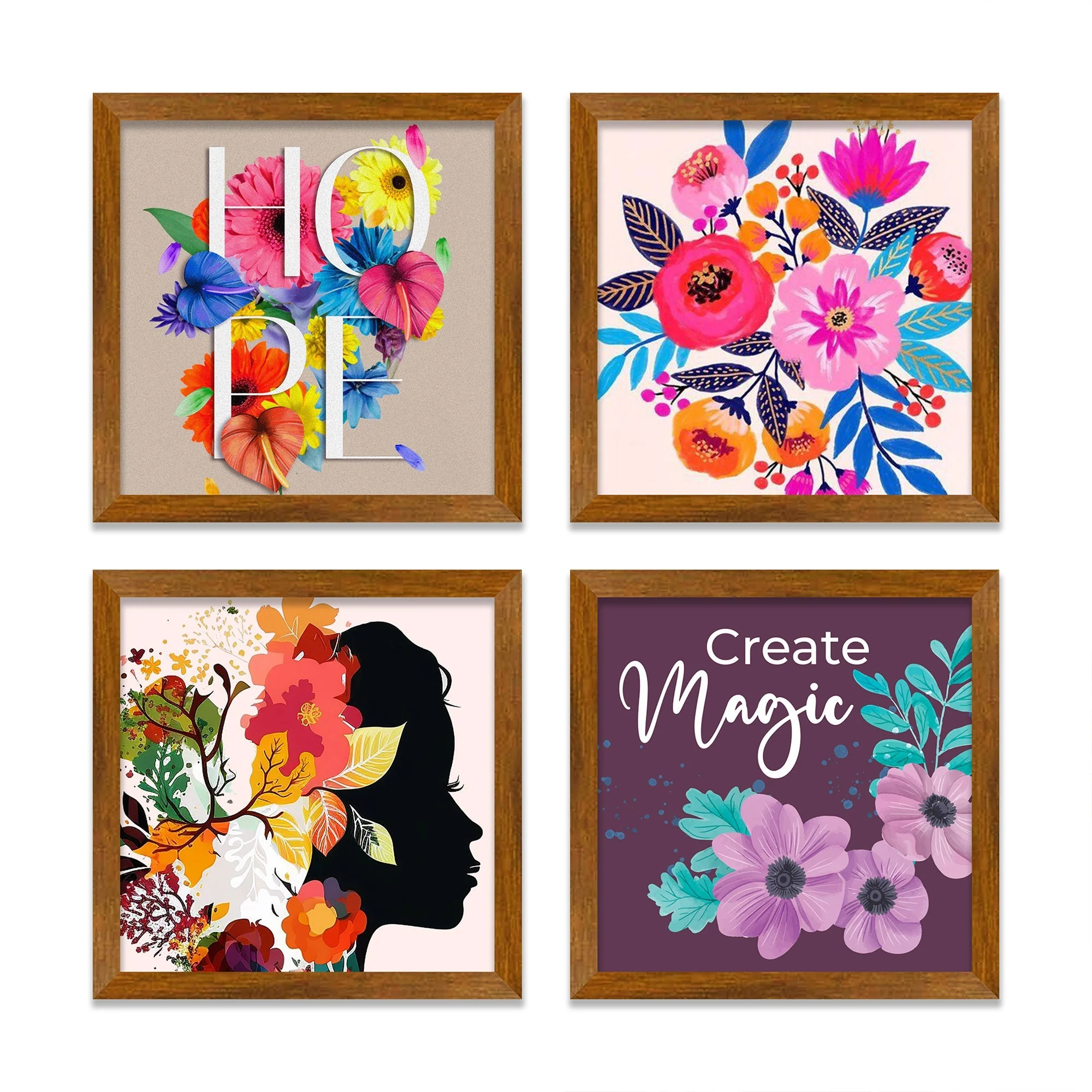 Beautiful Colorful Decorative Flower Art Wall Frame Set of Four