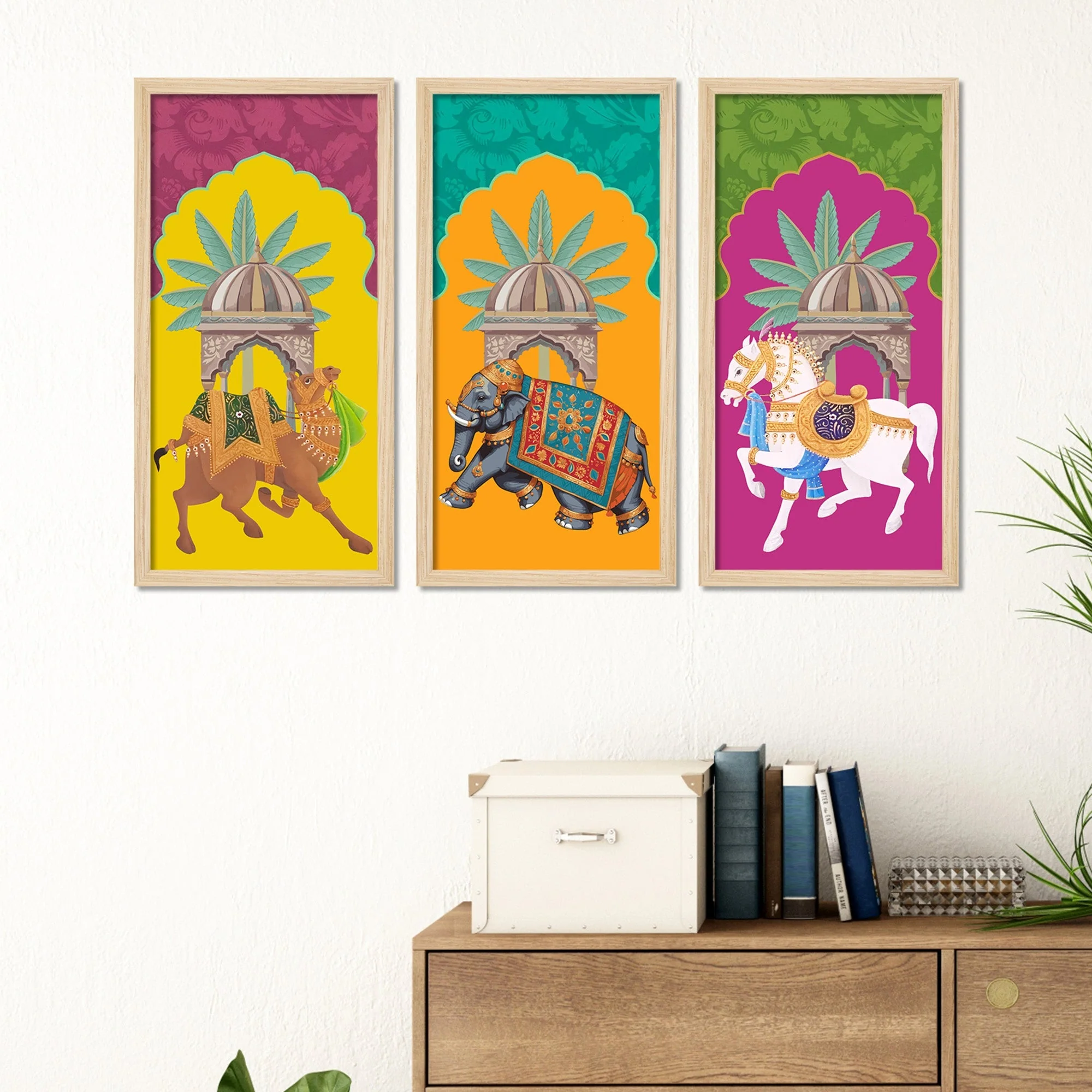 Decorative Animals Floral Art Wooden Wall Frame Set of Three