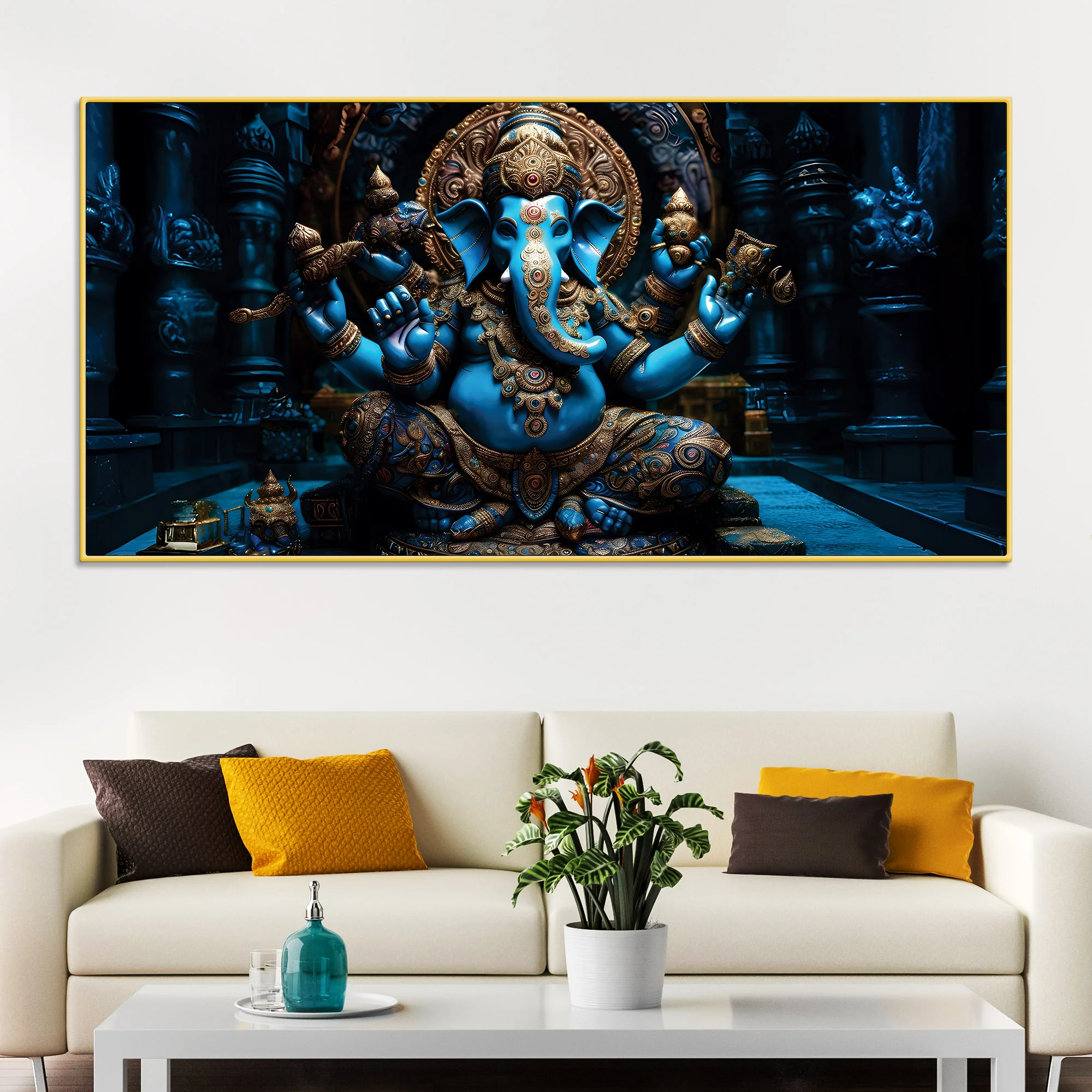 Maha Ganesh in Sacred Blue Premium Canvas Wall Painting for Living Room & Pooja Space – Modern Religious Wall Decor