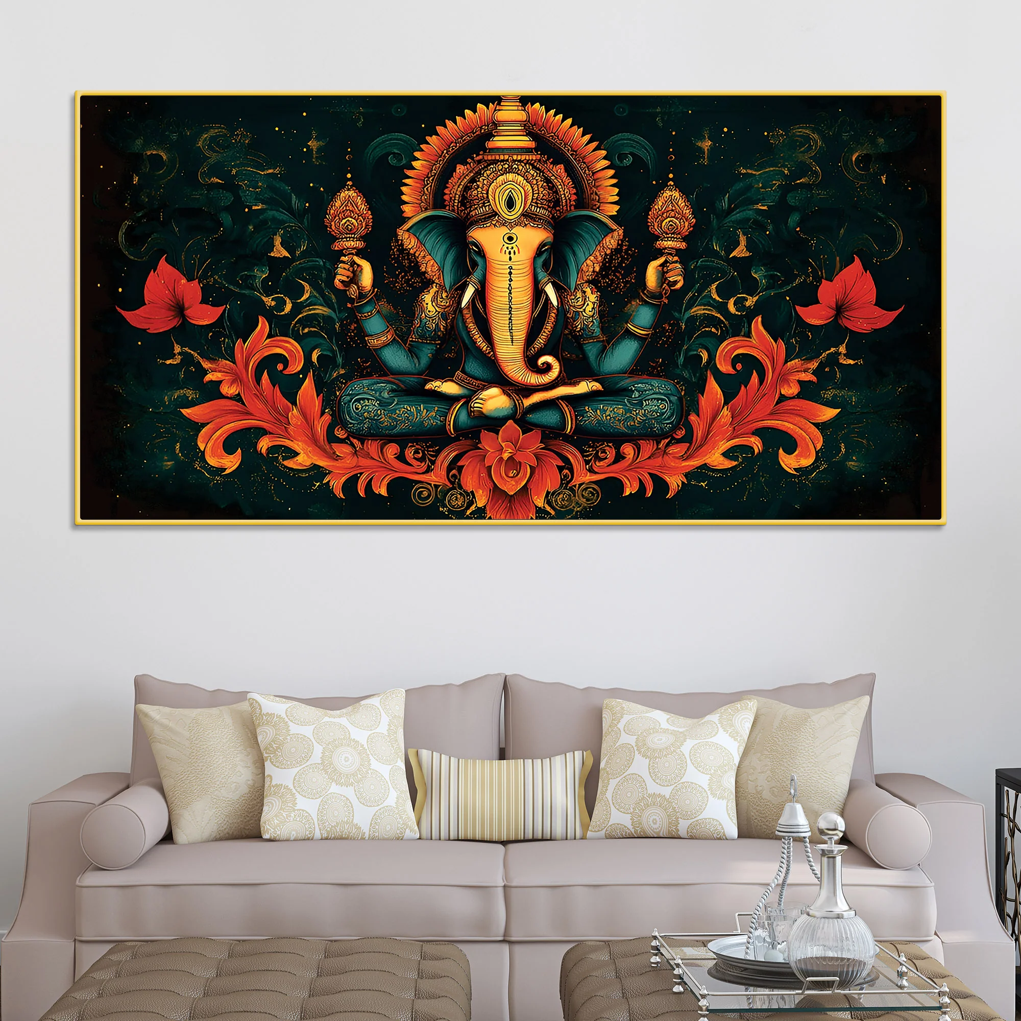 Premium Artistic Lord Ganesha Floral Exclusive Art Canvas Wall Painting for Home & Office Spaces – Modern Religious Wall Art
