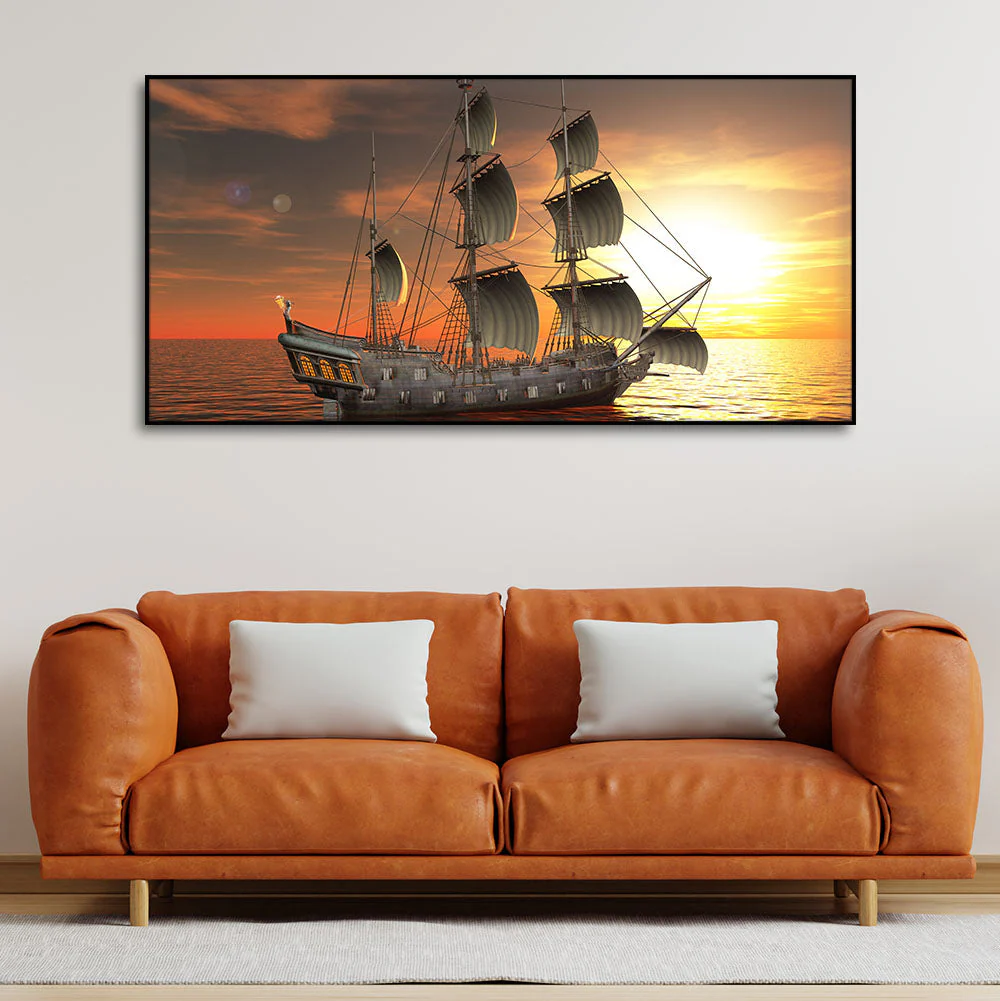 Premium Wall Painting of 3D Sailing Ship in Sunset