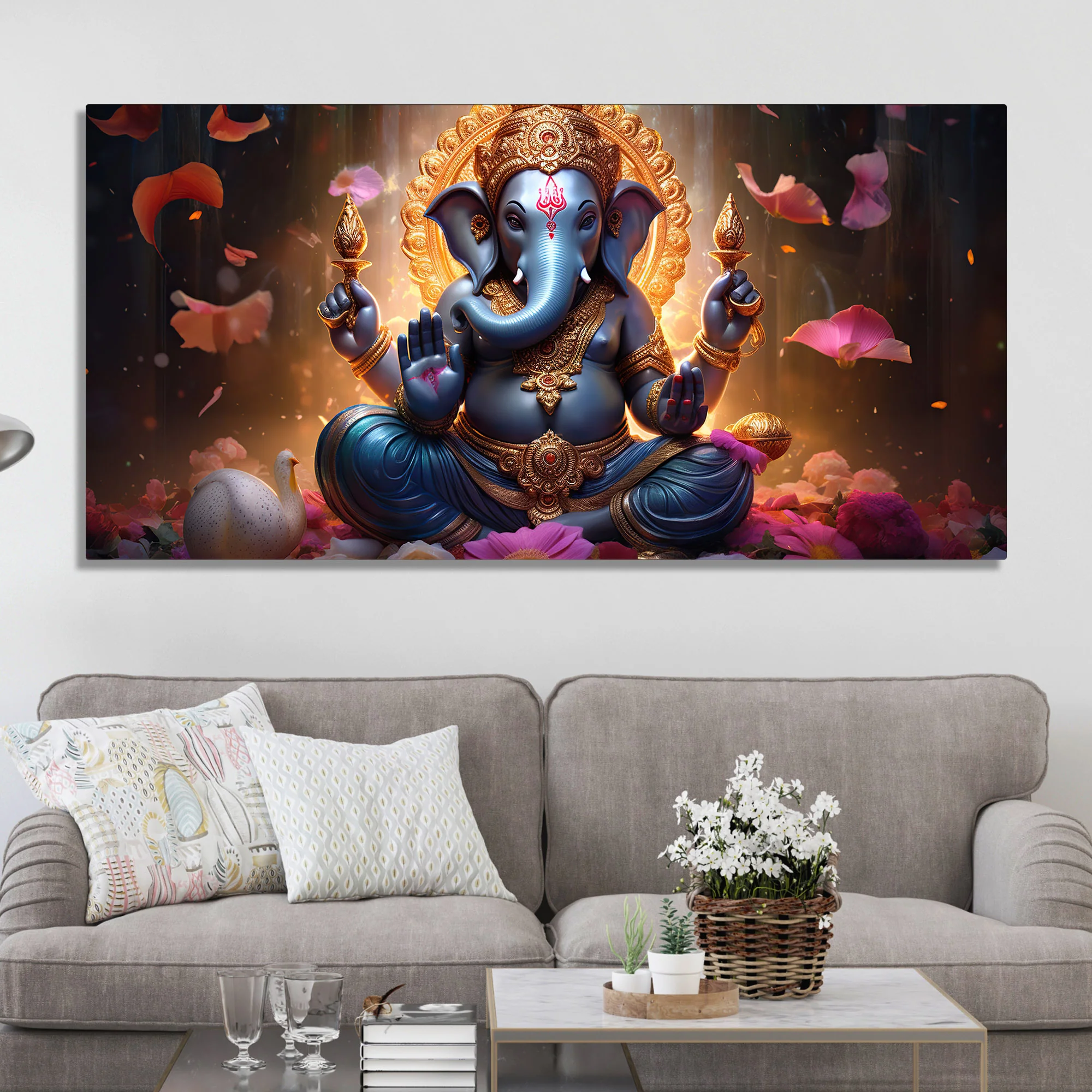 Vighnaharta Lord Ganpati Premium Canvas Wall Painting